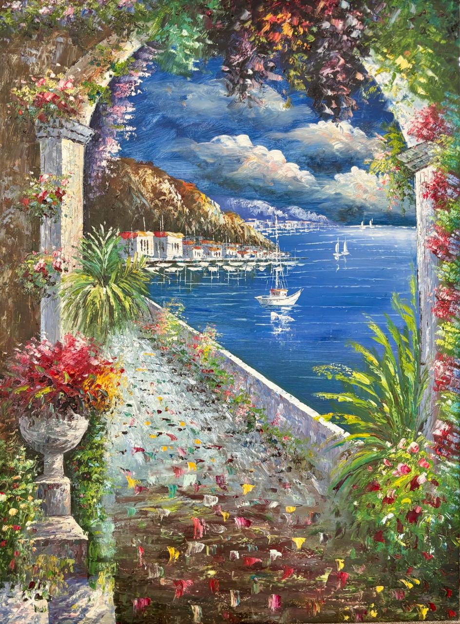 A primavera é um conceito em si, um fenômeno que simboliza a renovação da natureza e do humano. Esta pintura repleta de cromatismo inspira uma atmosfera mágica, convidando-nos a atravessar o portal poético da visão do artista.